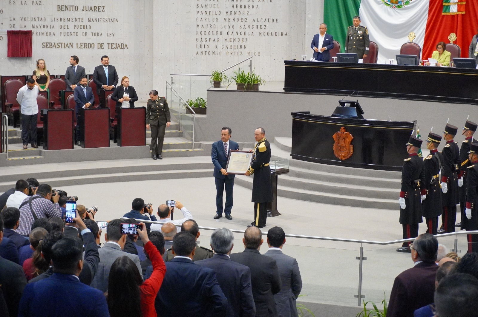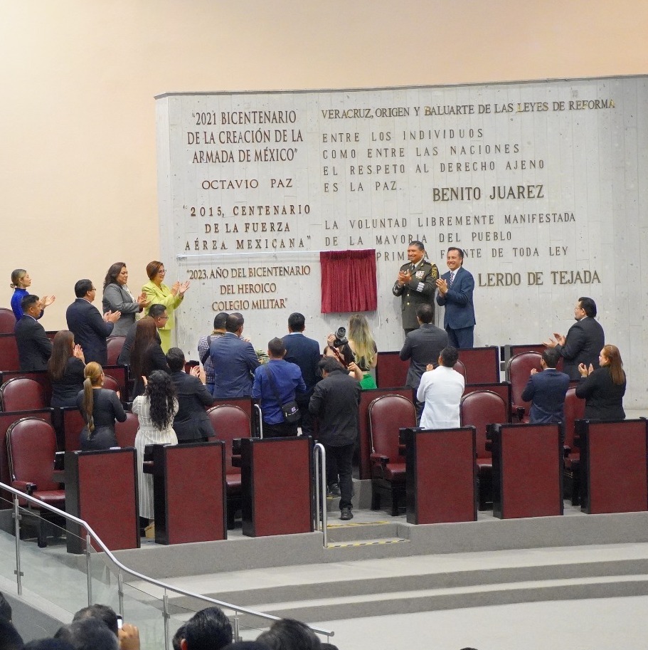 Este lunes 22, con la presidencia del secretario de la Defensa Nacional, general Luis Crescencio Sandoval González; del director del Heroico Colegio Militar, Jorge Antonio Maldonado Guevara; del gobernador Cuitláhuac García Jiménez, junto con la diputada Mago Corro Mendoza, presidenta de la Mesa Directiva del Congreso local, y la presidenta del Poder Judicial, Lisbeth Aurelia Jiménez Aguirre, develaron la inscripción en el muro de honor del Pleno de la LXVI Legislatura.