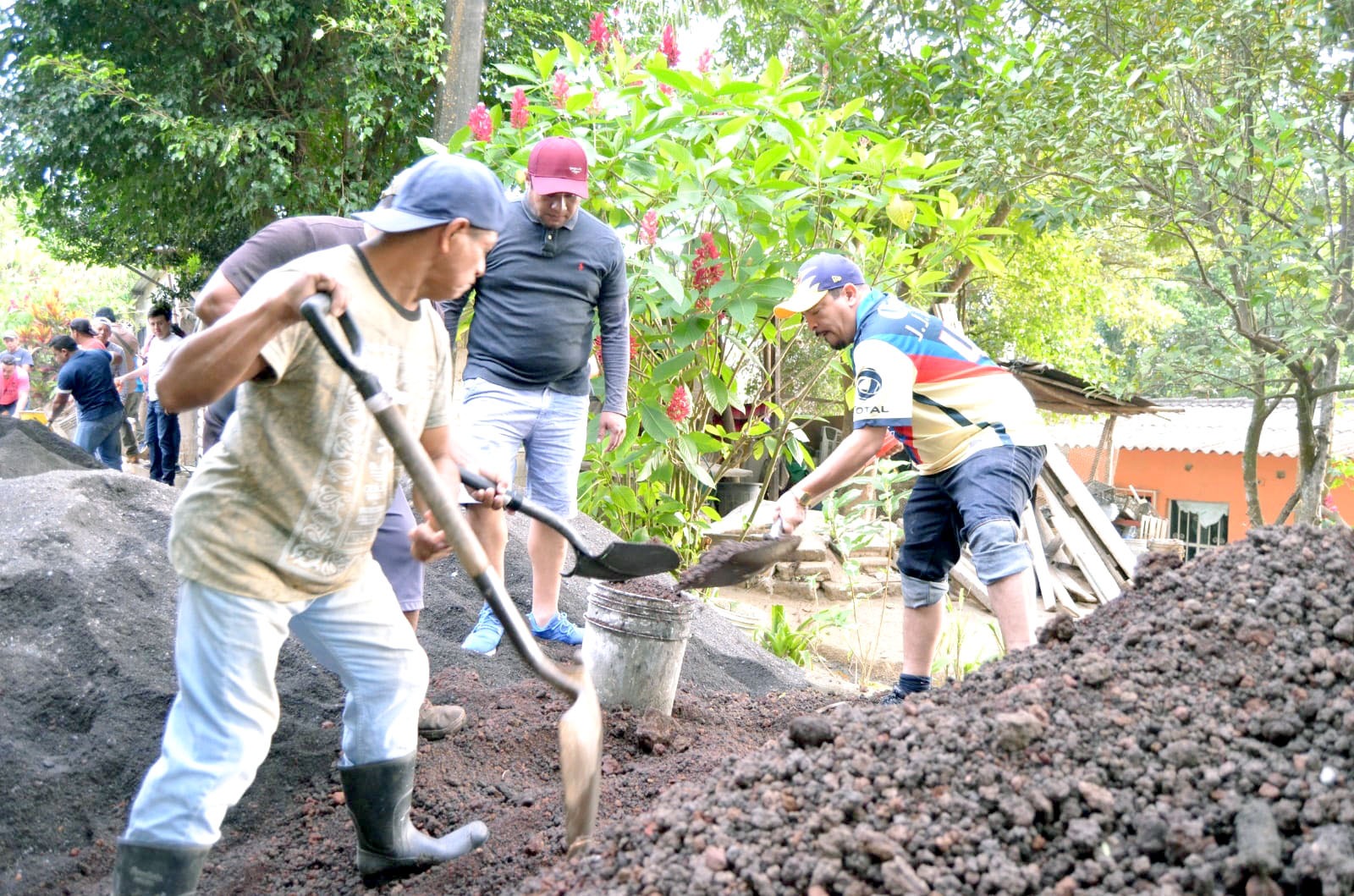 Con pala en mano, acarreando bultos y vertiendo cemento en un camino de 200 metros lineales de pavimento, solicitado por las familias de esta localidad, Juan Javier Gómez Cazarín expresó que donde la población se organice, ahí se estará apoyando para la realización de las obras que requieran.