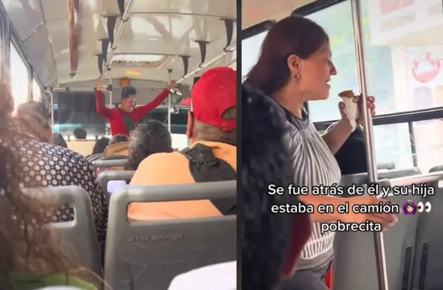 Segundos después el payaso comienza a caminar por el camión recibiendo monedas del público, a lo que la mujer comienza a insultar a los pasajeros por darle dinero al hombre y los llama pendejos.