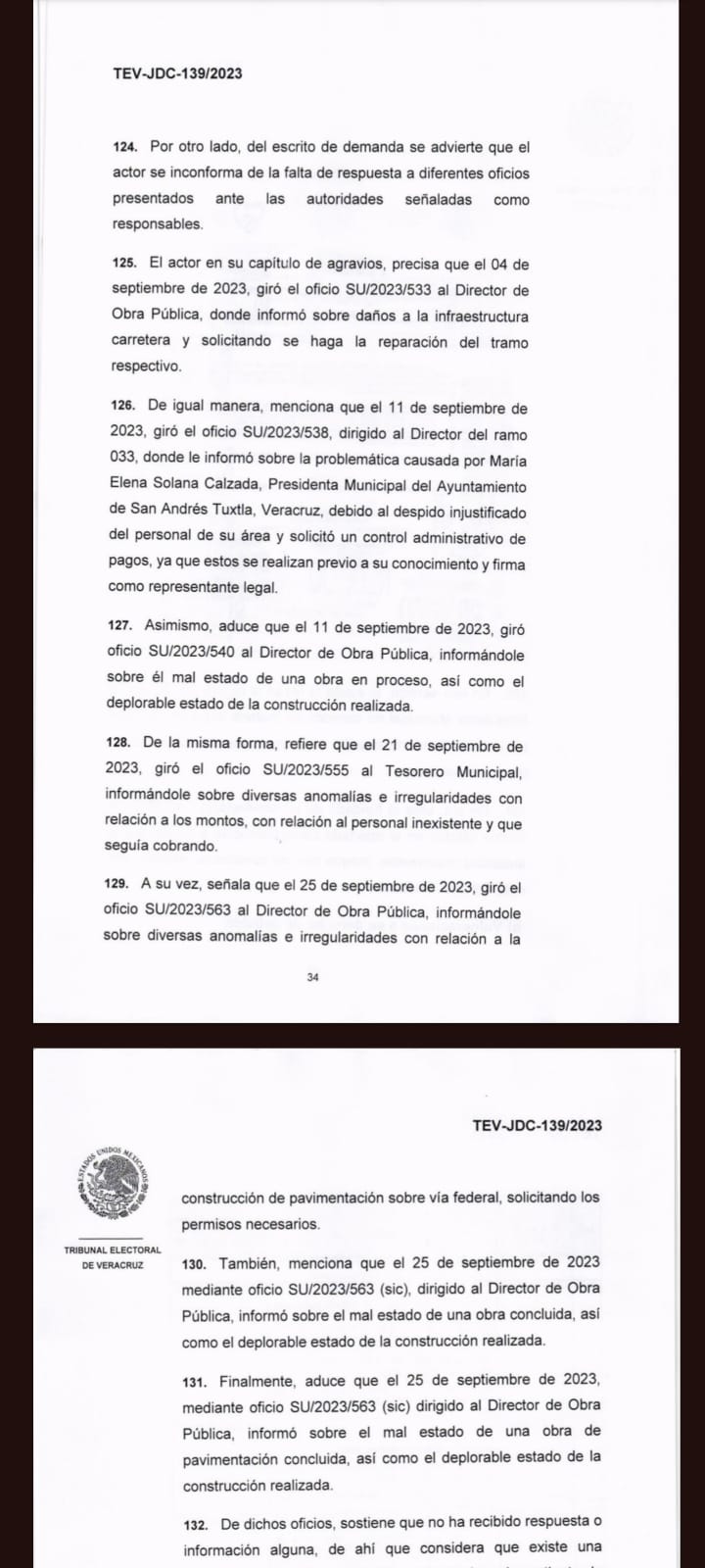 También se agregaron a esta demanda: la indebida convocatoria a sesiones de cabildo por parte de la presidencia municipal, vulneracion al derecho de peticiones del síndico, la mala calidad de obras en el municipio de San Andrés Tuxtla, diversas anomalías e irregularidades con relación a los montos y personal inexistente y que seguía cobrando.
