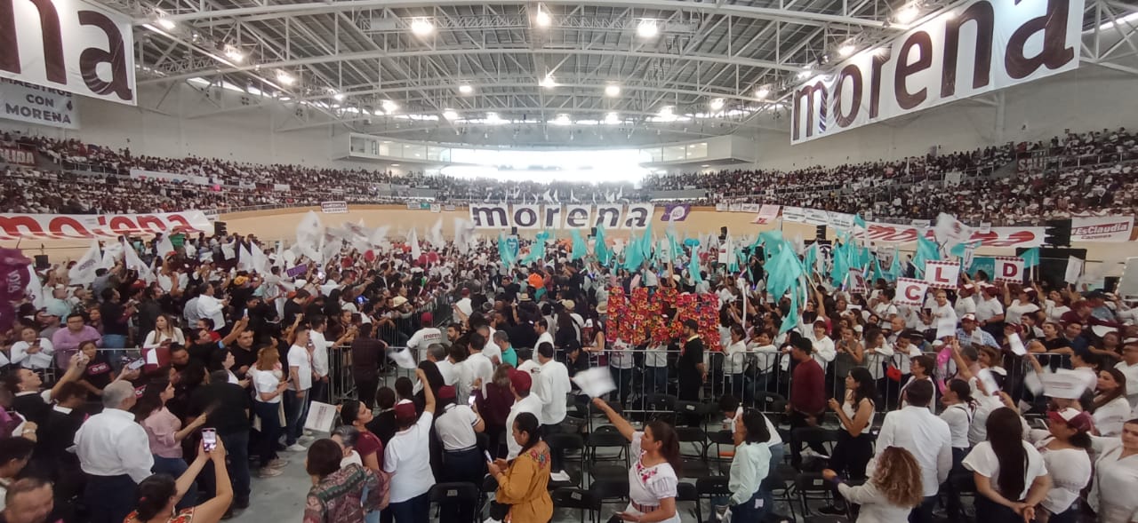 A su arribo, el velódromo brilló con miles de luces de celulares, de miles de mujeres y hombres que le brindaron a Claudia Sheinbaum un recibimiento cálido y único, como sólo Veracruz sabe darlo.