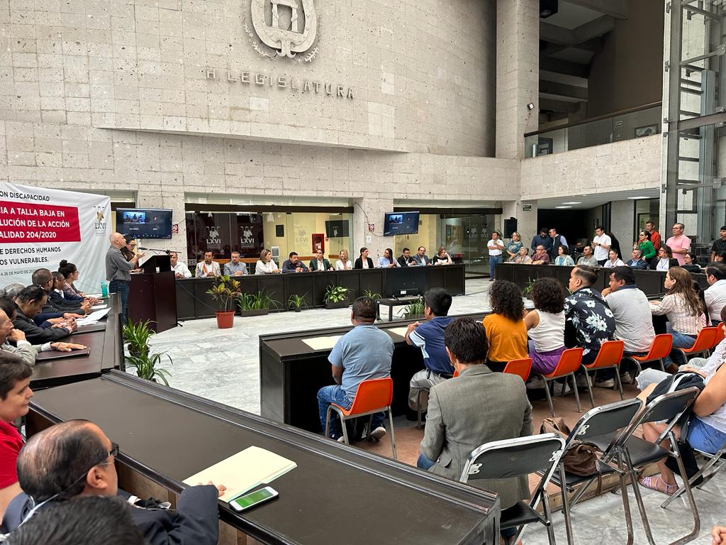 Primera, “¿Consideran ustedes que la talla baja es una discapacidad física?; dos, en lugar del término trastorno de talla, ¿Cuál es el que consideran más adecuado para que la Ley se refiera a este grupo de población?”, y la tercera, “¿Están ustedes de acuerdo en que la talla, la condición económica, el embarazo en el caso de las mujeres, la identidad política, la lengua, la situación migratoria o las preferencias sexuales de las personas con discapacidad no sean motivo de discriminación, y que así se considere en la Ley 822 el Congreso del estado?”