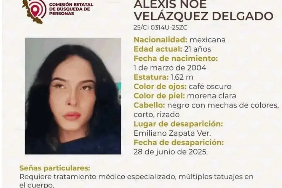 Alexis Noé Velázquez Delgado, una mujer trans, fue reportada como desaparecida desde el pasado sábado 28 de junio en el municipio de Emiliano Zapata.