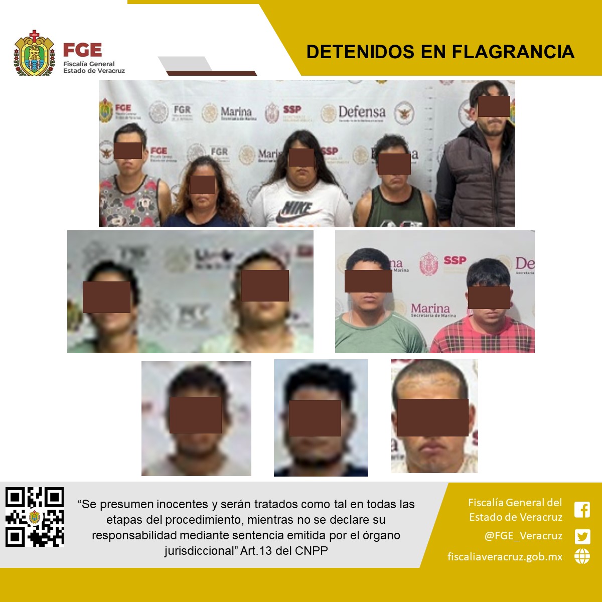 Los cateos se efectuaron en los municipios de Coatepec, Xalapa, Martínez de la Torre, Veracruz, Boca del Río, La Antigua, Ángel R. Cabada, Otatitlán, Catemaco, Santiago Tuxtla y Saltabarranca.