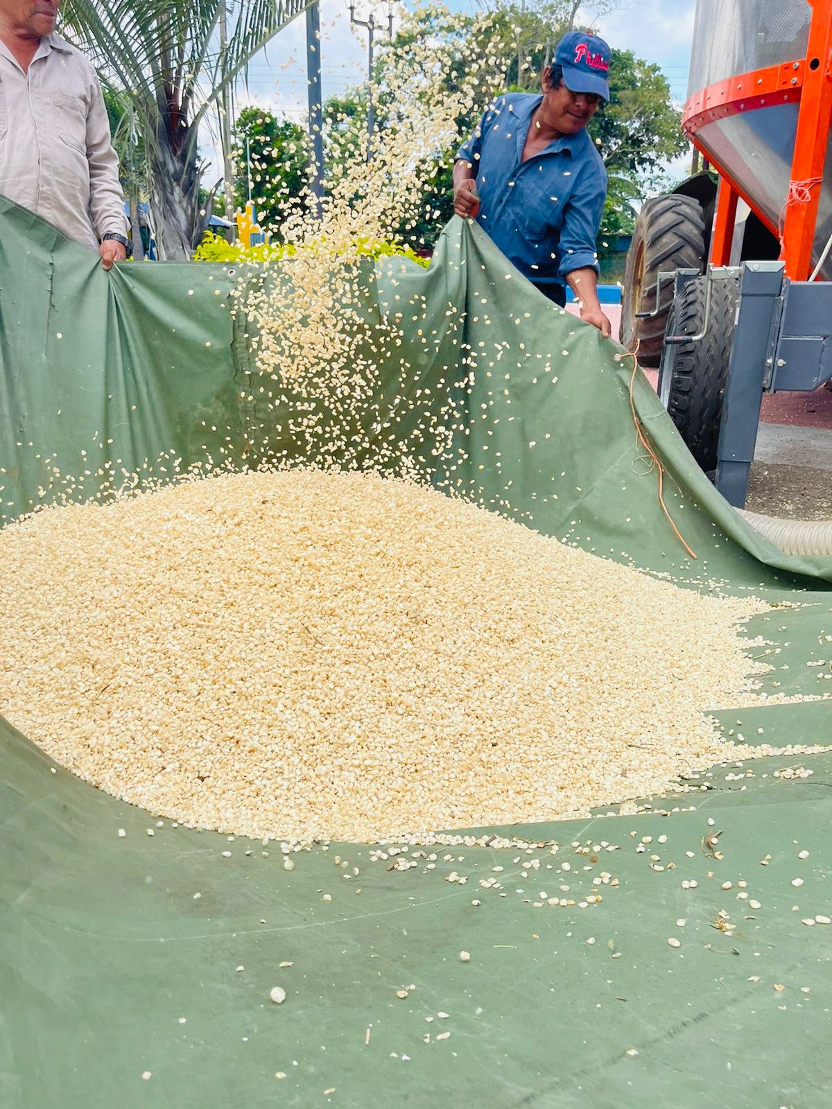 *El titular de SEDARPA Veracruz, Evaristo Ovando Ramírez, estuvo presente en la puesta en marcha de la desgranadora.