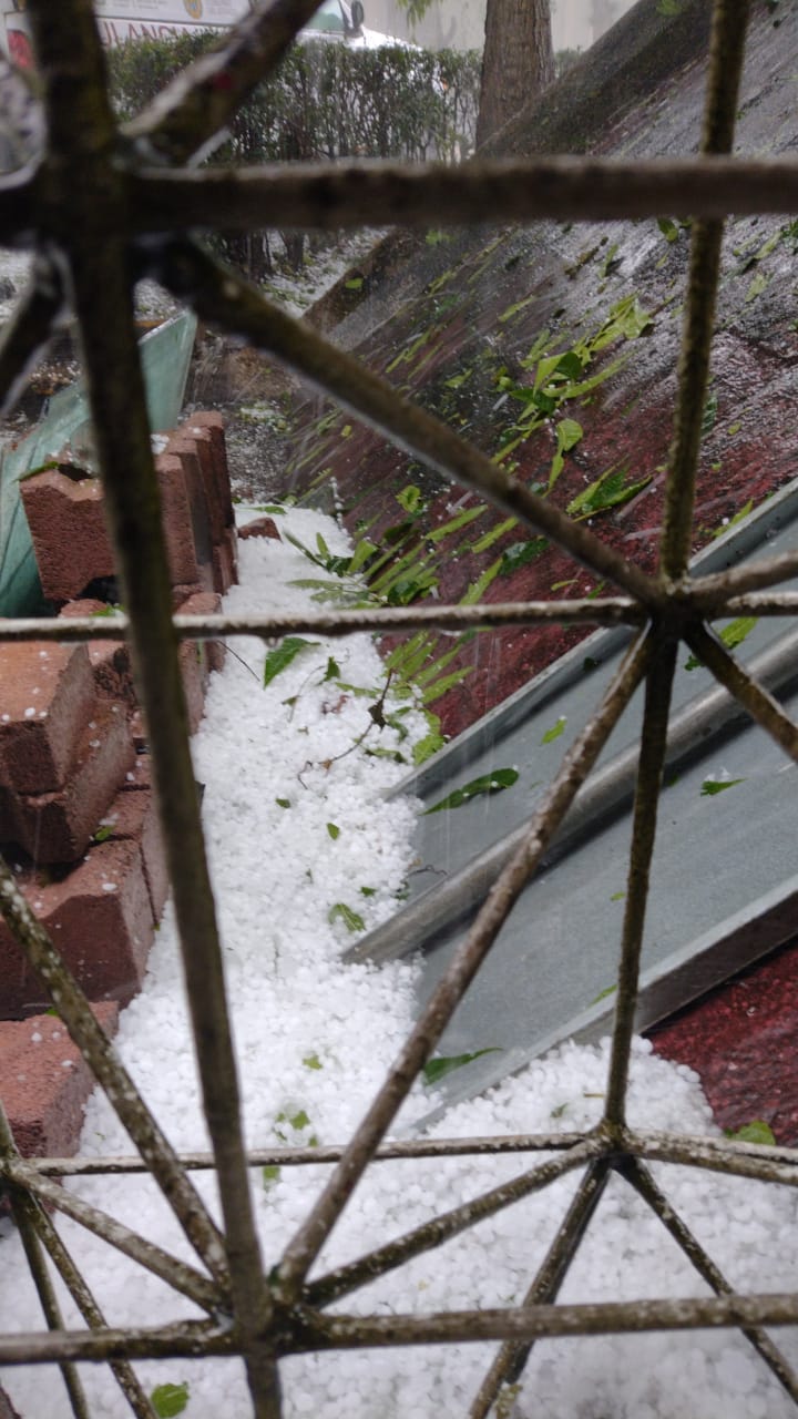 También hay reporte de caída de granizo en Plaza Américas, Ruiz Cortines, por la Secretaría de Finanzas y Planeación, la colonia 21 de marzo.