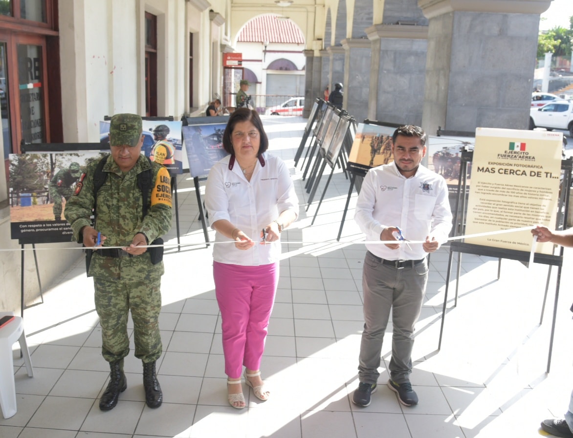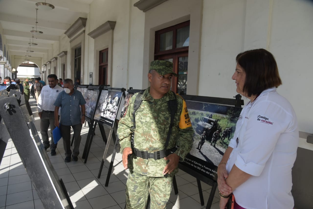 San Andrés Tuxtla, Ver.- Con la finalidad de mostrar que más allá de la defensa de nuestra soberanía, el ejército mexicano realiza diariamente una incansable labor comunitaria y humanitaria, este martes 19 de julio, la Presidenta Municipal de San Andrés Tuxtla, la Dra Maria Elena Solana Calzada – Dra Remedios inauguró la exposición fotográfica de la Secretaría de la Defensa Nacional (SEDENA) denominada “Ejército y Fuerza Aérea Mexicana más cerca de ti”.