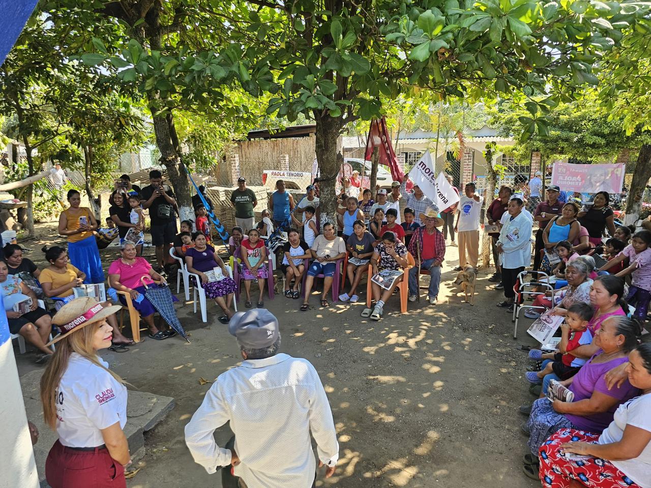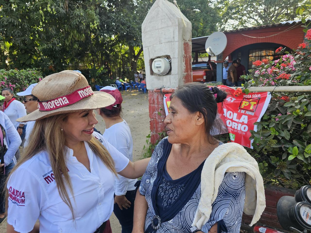La candidata de la 4T saludó este domingo a los habitantes de Las Galeras, Lauchapan, Laurel Viejo, Popotal, Laurel, Mazunmiapan y Bebedero de San Andrés, con quienes tuvo un dialogo abierto y amigable, quienes la recibieron con mucha alegría.