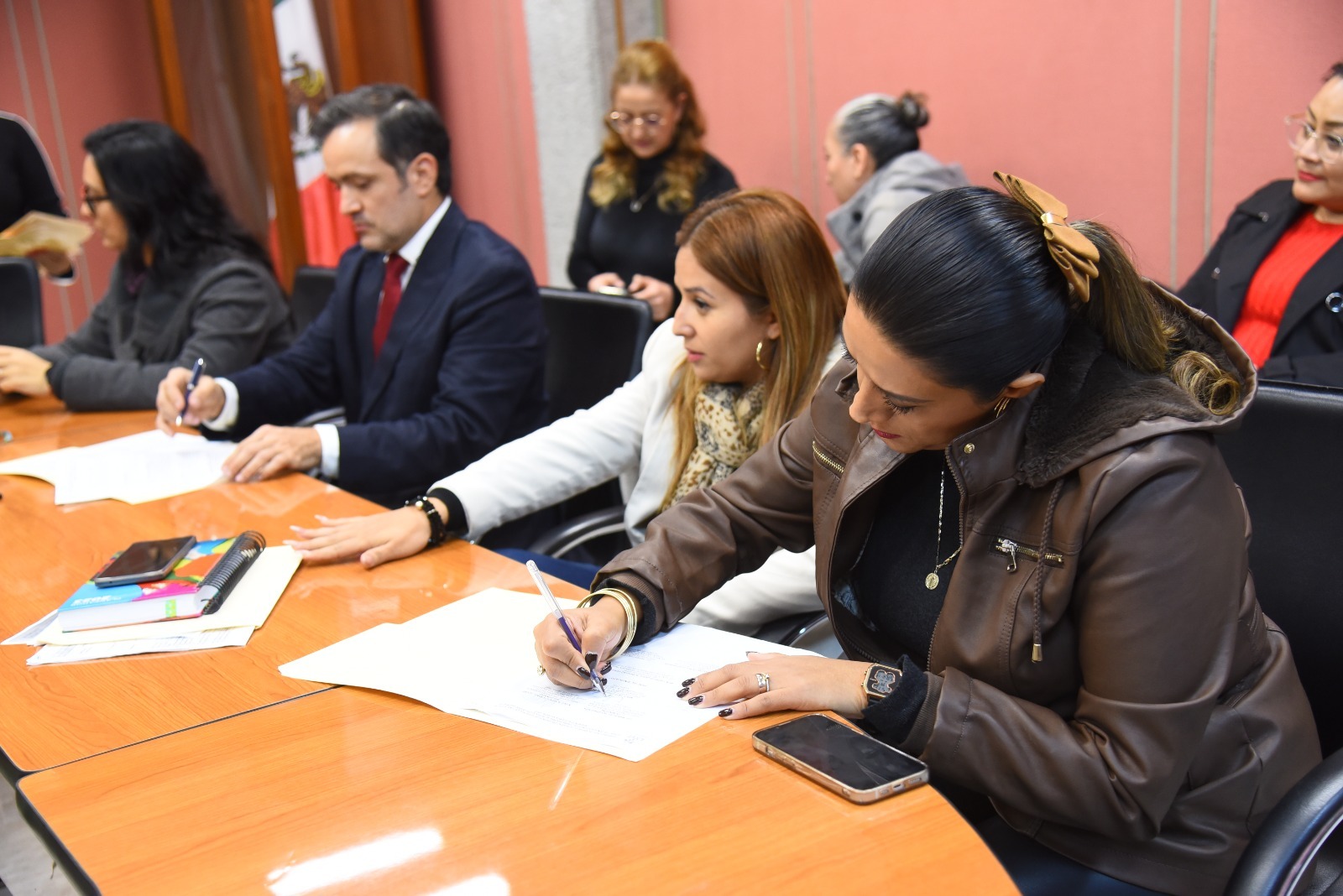 Acto seguido, se procedió a la firma del convenio que contiene un incremento del 6 por ciento al salario base y ajustes a diversas prestaciones adjuntas, posteriormente, el legislador Gómez Cazarín agradeció el trabajo implementado durante el año por todas y todos los empleados al servicio del Congreso local.