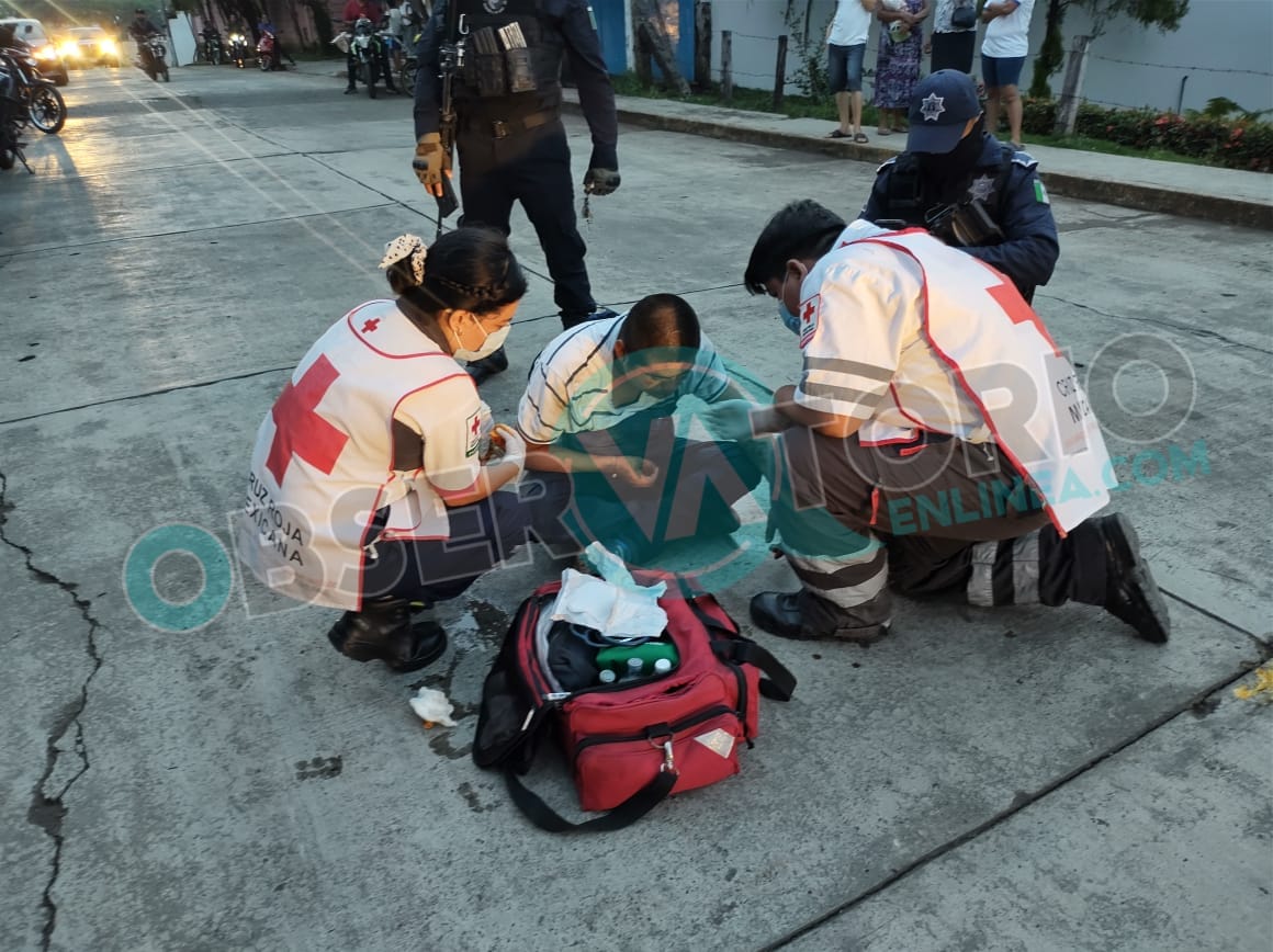Ante lo sucedido arribaron Técnicos en Urgencias Médicas de la Cruz Roja y al haberle brindado los primeros auxilios lo canalizaron al hospital Bernardo Peña para su atención médica.