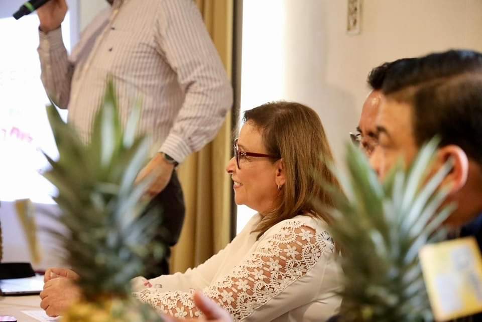 Veracruz, Ver.- Conocedora de las bondades de la tierra veracruzana y del primer lugar que ocupa la entidad como productora de cítricos a nivel nacional, la precandidata única a la gubernatura de Morena, PT y Partido Verde en Veracruz, Rocío Nahle García, se reunió con productores de piña para escucharlos y definir acciones que permitan incrementar el potencial del sector.