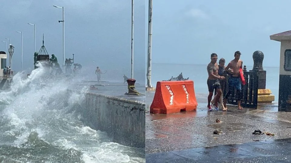 Norte extremo: rescatan a turistas de Jalisco de muelle de Veracruz atrapados por norte fuerte
