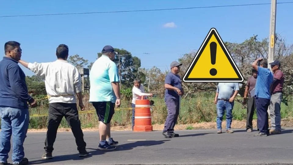 En medio de los trabajos de rehabilitación de la carretera antigua a Minatitlán, pobladores de Cantican bloquearon el paso vehicular; esto exigen a los encargados de la obra