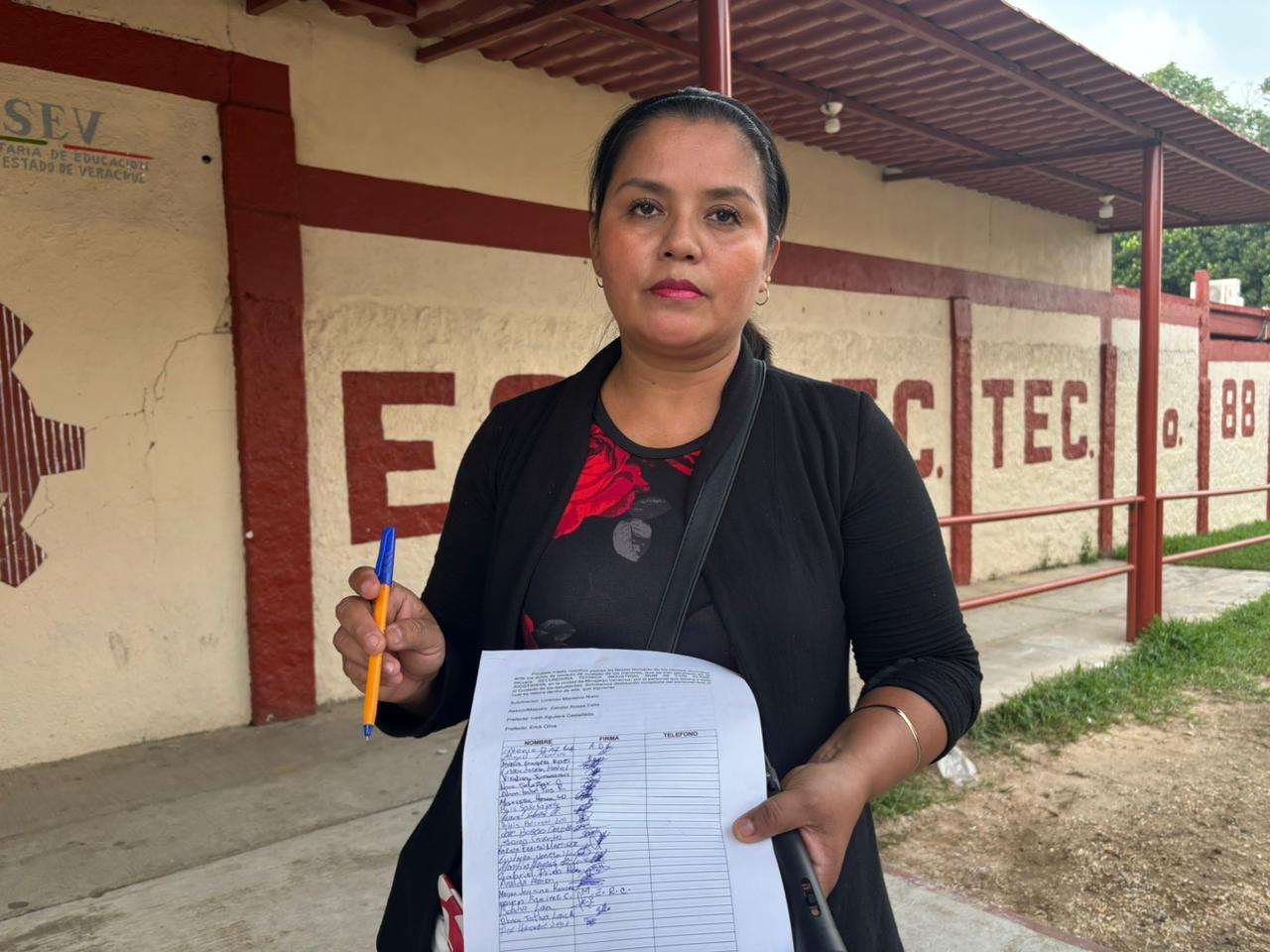 Macaria Cruz López esta tarde de jueves tomo un micrófono y una bocina y se manifiesto afuera de la escuela secundaria técnica ESTI 88 en Minatitlán, exige justicia por el presunto abuso sexualmente a su hija menor.