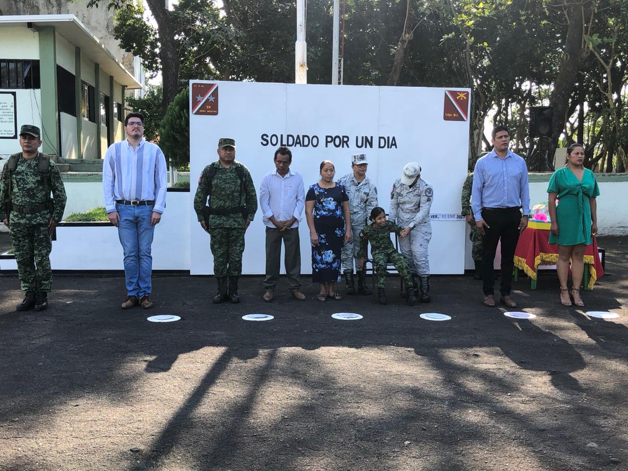 La menor fue rodeada por elementos del ejército mexicano y también de la guardia nacional quiénes le rindieron honores, pase de lista, y además recorrió la base militar junto a otros dos pequeños: Alexa Valeria Córdoba Chontal y Gustavo Adolfo Coloniano Palacios, siempre escoltados por el comandante del primer batallón, el coronel de infantería del estado mayor Luis Antonio Sánchez Mendoza, y autoridades civiles como: la presidenta municipal de Santiago Tuxtla; la profesora Brianda Kristel Hernández Topete, el presidente del DIF municipal de Santiago Tuxtla; Julio César Vázquez Copete, además del presidente del sistema DIF en San Andrés Tuxtla; Felipe Rubio Solana.