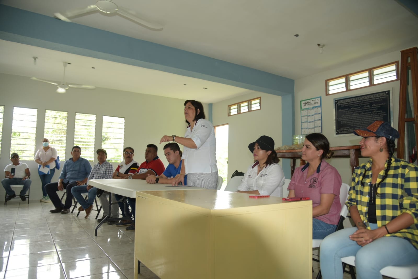 San Andrés Tuxtla, Ver.- Durante una intensa gira de trabajo por el corredor costero de su municipio, la Presidenta Municipal de San Andrés Tuxtla, la doctora María Elena Solana Calzada, visitó las comunidades de Salinas Roca Partida y La Nueva Victoria, siendo esta última localidad donde se reunieron en asamblea con agentes municipales de la costa y la montaña para analizar sus necesidades y propuestas de obra prioritaria que puedan integrarse en los próximos ejercicios de obra pública.