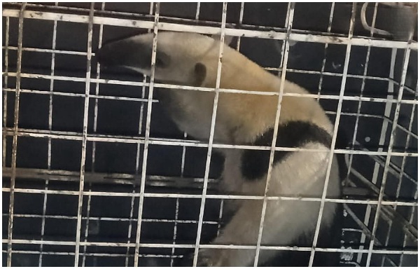 Un ejemplar de oso hormiguero fue asegurado por personal de Protección Civil de Minatitlán, luego de ser localizado con una lesión en una de sus patas.