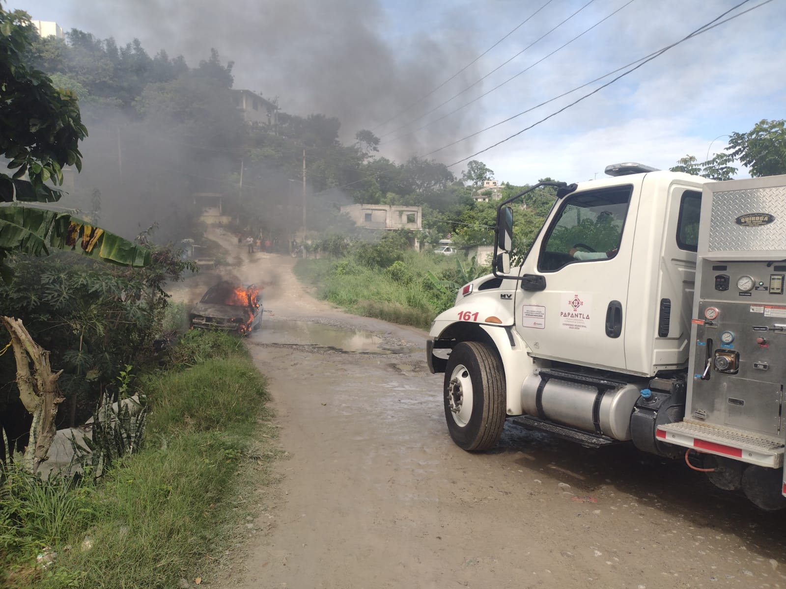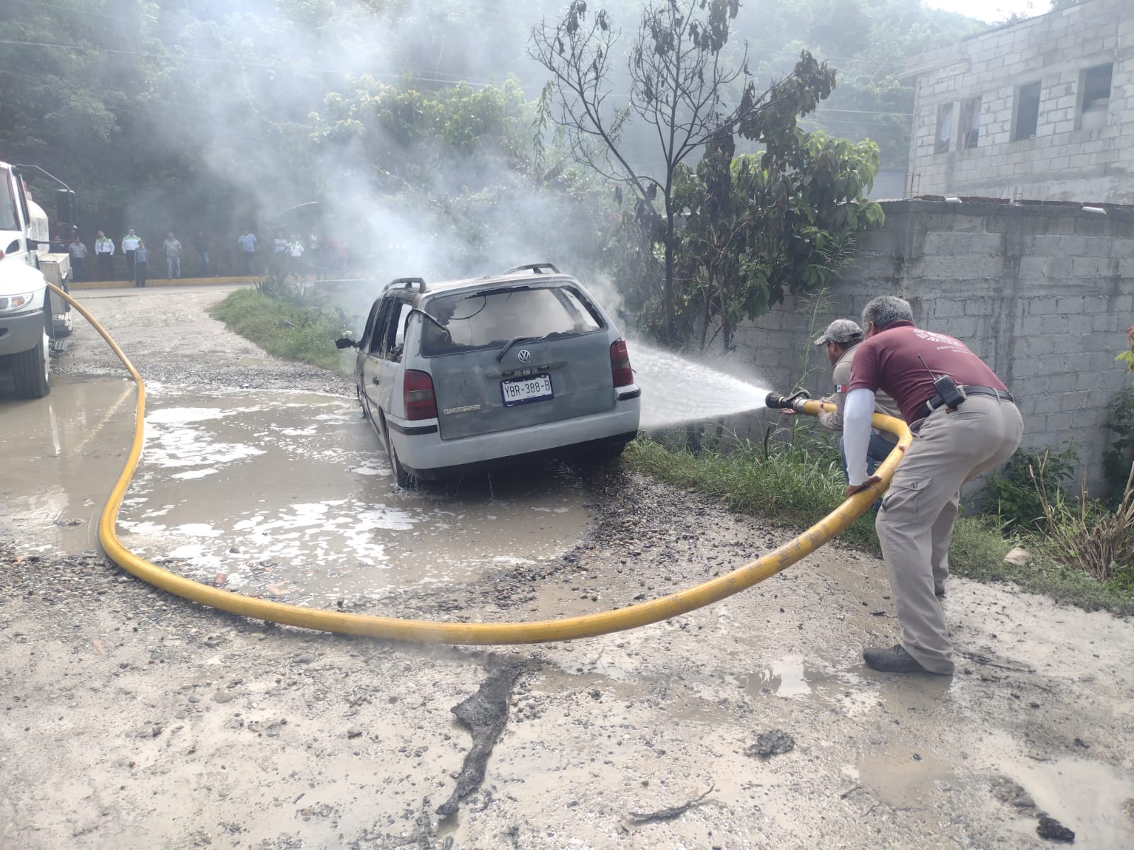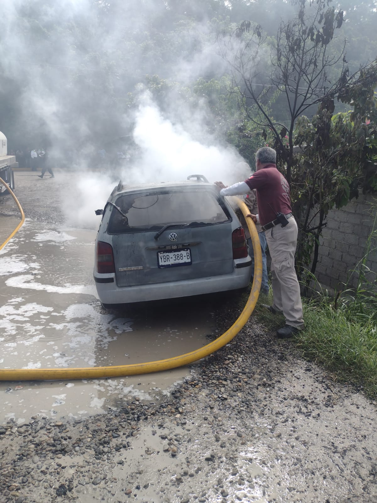 Solicitando, la presencia de los cuerpos de emergencia hasta dicho lugar, arribando personal de Protección Civil Municipal al mando de Othón Gutiérrez, preventivos municipales y posteriormente, Bomberos Voluntarios para sofocar dicho siniestro.