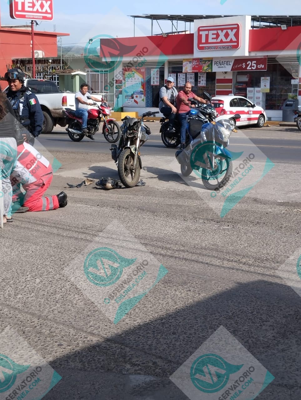 Minutos más tarde, se reportó otro accidente, igual participando una motocicleta y un taxi, el cual dejó como resultado a un menor lesionado, tal suceso se registró sobre el boulevard 5 de Febrero esquina con Adalberto Tejeda, por lo que arribaron paramédicos de la Cruz Roja y le brindaron los primeros auxilios al infante y a una dama.
