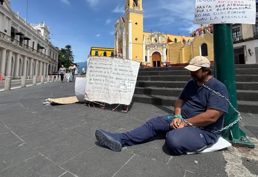 Juan Ricardo llegó a la ciudad de Xalapa desde el pasado 9 de junio para iniciar con la huelga de hambre y su inconformidad continuó en la plaza pública de la capital del estado.