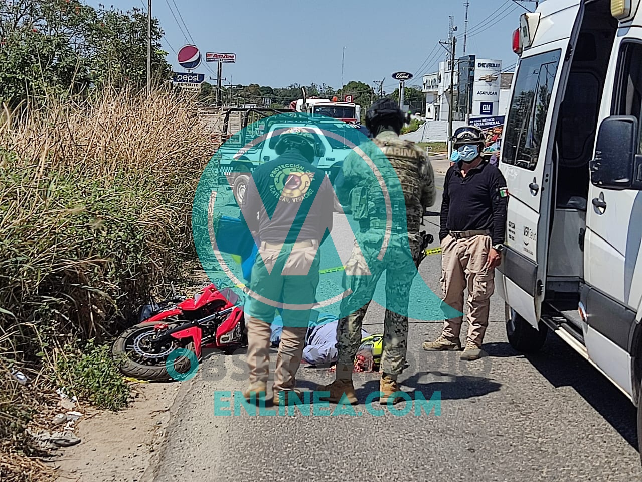 Acayucan, Veracruz.- Una horripilante muerte obtuvo un varón de aproximadamente 35 años de edad, luego de ser aplastado por una unidad pesada mientras transitaba a bordo de una motocicleta sobre la carretera costera del golfo.