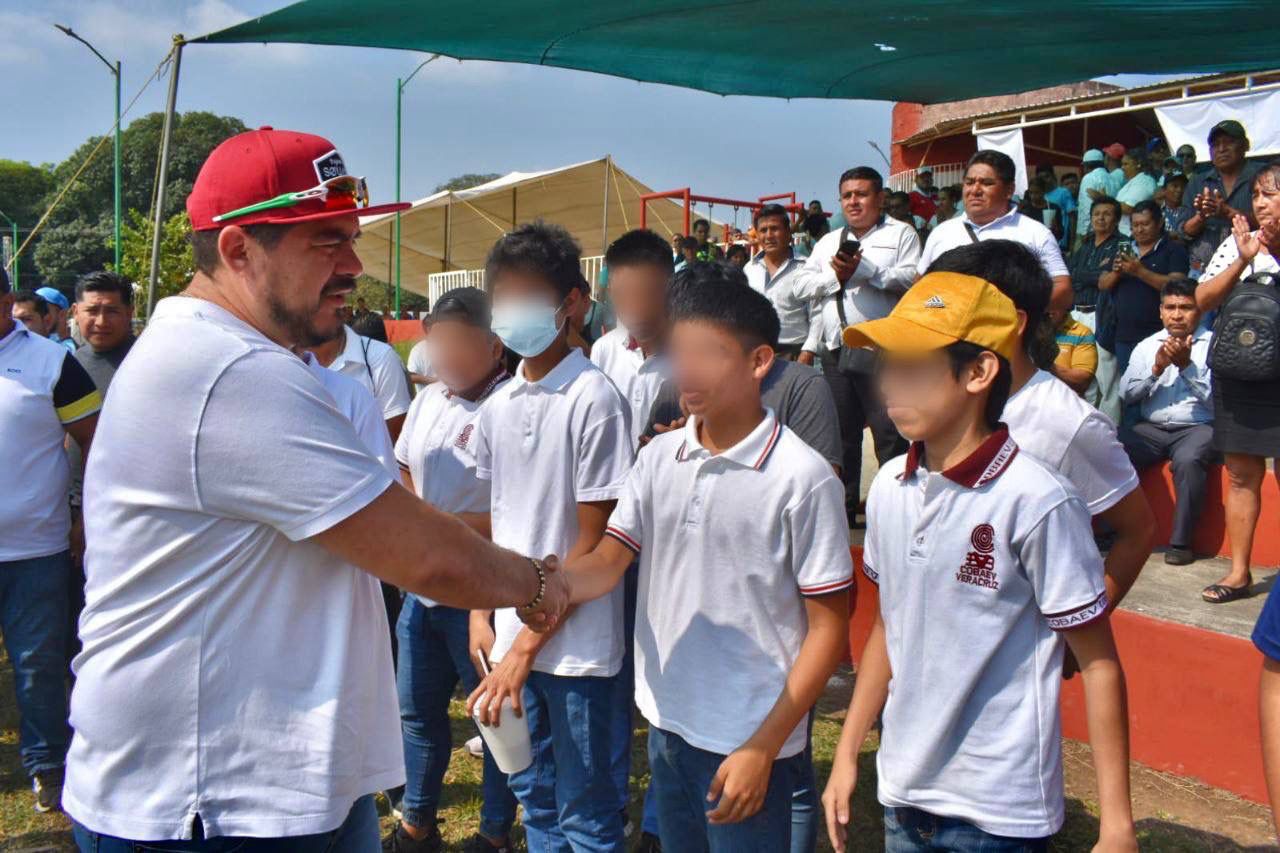 San Andrés Tuxtla, Ver., 12 de marzo de 2023.- En representación del gobernador Cuitláhuac García Jiménez, esta mañana el secretario de Educación de Veracruz, Zenyazen Escobar García, dio la patada de inauguración de la Primera Copa Deportiva Tlachtli de Futbol Femenil y Varonil.