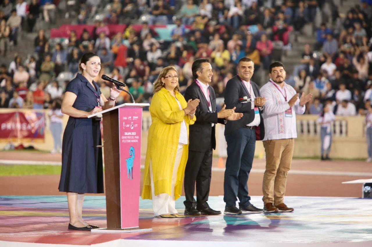 • En presencia del gobernador Cuitláhuac García Jiménez y la directora de la CONADE, Ana Gabriela Guevara, atletas de 24 países participaron en la inauguración del Xalapa 2023 World Para Athletics Grand Prix.